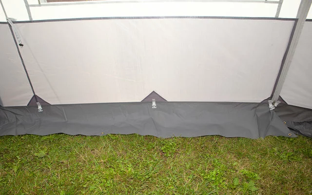 Praktisches Wohnwagen-Teilvorzelt. Vorderwand mit zwei Eingängen (hochrollbar). Drei verstärkte Abspanngurte sorgen für zusätzliche Stabilität. Faulstreifen wahlweise innen oder außen abspannbar. Vier große Fenster, welche von innen blickdicht durch Fensterklappen verschlossen werden können. Zusätzlicher Seiteneingang links und rechts. Seitliche Fenster mit zusätzlichem Moskitogaze. Doppelt abgedeckte Reißverschlüsse sorgen für Wind- und Regenschutz. Inkl. 2 Schaumstoffwulste zur optimalen Anbringung am Wohnwagen. Schnellspanner am Gestänge sorgen für einen erleichterten Zeltaufbau. Die Größe der Kederschiene beträgt Ø 7 mm. Die Zelthöhe im Inneren beträgt: 220 cm.