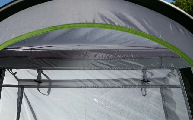 Des Weiteren befinden sich an den Seitenwänden Dauerbelüftungen, diese fördern die Luftzirkulation und vermindern somit die Bildung von Kondenswasser und sorgen zudem für ein angenehmes Klima in Ihrem Vorzelt.