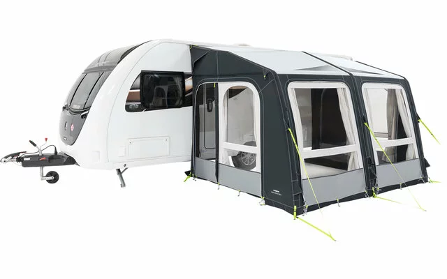 Das Design des beliebten Rally AIR Pro bietet die neuesten Innovationen, die Dein Reiseerlebnis noch angenehmer machen. Aus dem Weathershield-Pro-Material, kristallklaren Fenstern und zusätzlicher Belüftung entsteht ein komfortabler Wohnraum, wo auch immer Du Dein Zelt aufschlägst. Die Türen der Seitenwände des Dometic Rally AIR Pro 330 sind mit Moskitonetz ausgestattet. Alle Luftschläuche sind miteinander verbunden und das Vorzelt kann dank des Einpunkt-Aufblassystems schnell aufgebaut werden. Durch das neue Anschlusshöhensystem kannst Du das Dometic Rally AIR Pro 330 Vorzelt nicht nur für Deinen Wohnwagen, sondern auch für Dein Wohnmobil nutzen. Solltest Du auf unebenen Boden stehen, kannst Du Dein Vorzelt mittels eines Reißverschlusses, der oberhalb der Seitentür vernäht ist, ausgleichen.