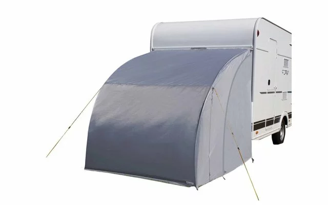 Neues Lagerzelt XL zur Befestigung am Hinterseite des Wohnwagens. Das Zelt ist mit einem Keder für Befestigung ausgestattet, 2 Fiberglasstangen und verschiedenen Spannungspunkten. Die zwei Stangen bieten einen extra geräumigen Innenraum und bieten ausreichend Stauraum für Fahrräder, Campingmöbel oder andere Campingausrüstung.