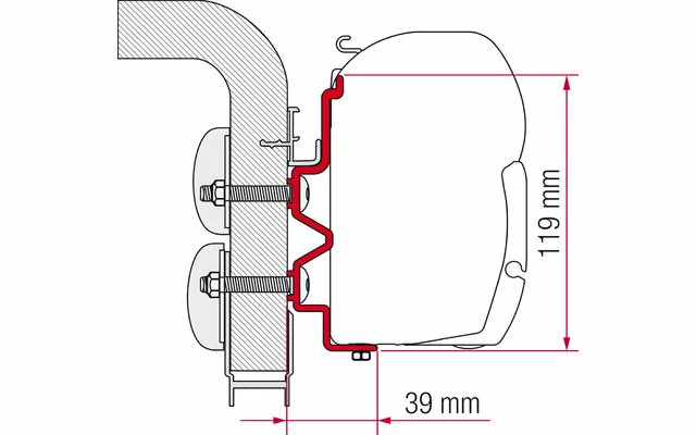 Passender Adapter für die Wandmontage von Fiamma Markisen (F45 / F70) an Fahrzeugen des Typs Hymercamp Swing, Starline, Hobby Van, Caravan Hobby 09. Besteht aus jeweils einer Halterung.