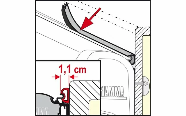 Hermetische Abdichtung gegen eindringendes Wasser zwischen Markise und Fahrzeugwand.