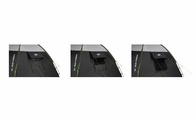 Die Reißverschluss-Abdeckung ist mit einer zusätzlichen Regenrinne ausgestattet. Die Regenrinne schütz zusätzlich gegen Eindringen von Nässe. Die sehr stabilen 5 mm Stahl-Erdnägel und V-Heringe verbiegen sich auch bei hartem Untergrund nicht. Innenzelt mit Vario Vent Control System.