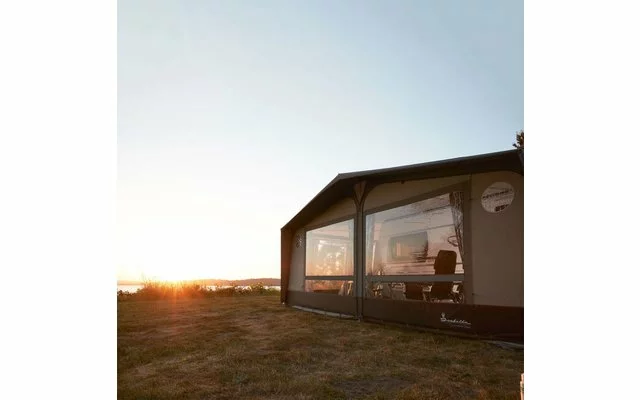 Farblich inspiriert vom Farbenspiel der Natur in der Dämmerung ist das ”Ambassador Dawn” mit leichtem CarbonXGestänge eine neue Interpretation des seit Jahren beliebtesten Isabella Vorzelt. Leichter Aufbau, viele durchdachte Details, optimale Passform und eine robuste Ausführung, zeichnen das Ambassador aus. Die Vorder- und Seitenwände werden aus unserem spinndüsengefärbten Traditionsgewebe “Isacryl” hergestellt. Dieses Gewebe ist leicht, robust aber vor allem atmungsaktiv, was zusammen mit der Textilunterseite im Dach (von außen beschichtet) für ein angenehmes Raumklima sorgt. Die Färbetechnik durch “Spinndüse” sorgt für eine optimale Farbechtheit über lange Zeit. Alle Wände sind komplett herausnehmbar oder zu einer Veranda abklappbar. So kann das Vorzelt auch als Sonnendach genutzt werden.