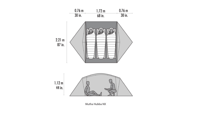 Maximaler Platz: Viel Bewegungsfreiheit im Kopf- und Ellenbogenbereich im gesamten Zelt, zwei große Eingangsbereiche seitlich bieten Platz für die Ausrüstung.