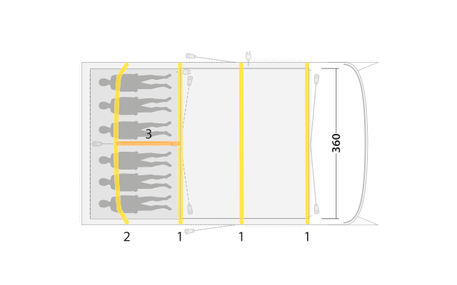 - Verstellbare Abspannpunkte für einen flexiblen Zeltaufbau