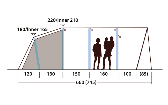 - Robuste Sturmleinen Hinterlüftungssystem für eine optimale Durchlüftung – sowohl bei offenem als auch geschlossenem Zelt