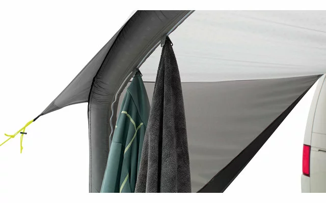Das Outwell Touring Canopy Air lässt sich super einfach aufblasen und entleeren und ist für Wohnmobile, Vans und Wohnwagen mit einer Höhe von 175 bis 255cm geeignet. Mit viel Kopffreiheit bietet es bequemen, leicht aufzustellenden Schutz vor Sonne und Regen, egal ob Sie campen oder einen lustigen Tag im Freien verbringen. Sie werden auch den Komfort des Outwell Hook Track Systems zu schätzen wissen, mit dem Sie Beleuchtung, Kleidung und andere leichte Gegenstände sicher und griffbereit aufhängen können. Das Sonnensegel ist mit einem Doppel-Kederprofil für die Befestigung an diversen Schienen oder Markisen ausgestattet. Das Packmaß ist sehr leicht und kompakt.