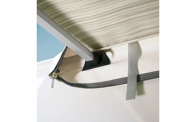 Thule Omnistor Markisen ab 4,00 m verfügen über eine integrierte Befestigung für einen optionalen dritten Stützfuß zur Sicherstellung höchster Stabilität. Ein integriertes Support Kit verteilt den Druck der Spannarme sicher auf die Wohnwagenwand.